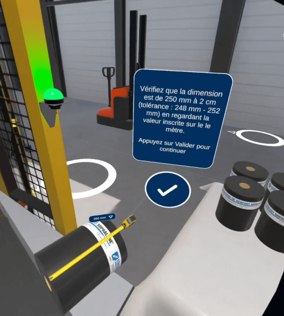 Parce qu’une formation efficace ne saurait se limiter aux scénarios idéaux, Soprema VR intègre également des mises en situation de dysfonctionnements : capteurs défectueux, rouleaux mal positionnés, arrêt d’urgence… Ces scénarios permettent de renforcer la réactivité des opérateurs et d’aborder les procédures de maintenance dans un cadre sécurisé et répétable à volonté.